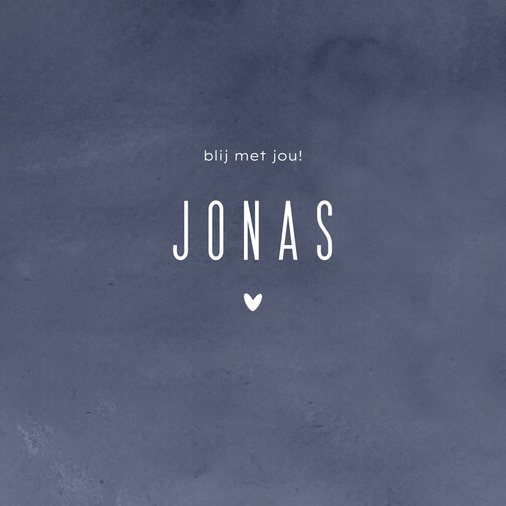 Donkerblauw geboortekaartje voor een jongen met een betonlook achtergrond. Dit geeft wat structuur in het kaartje. De naam en het hartje worden gedrukt in goudfolie.
