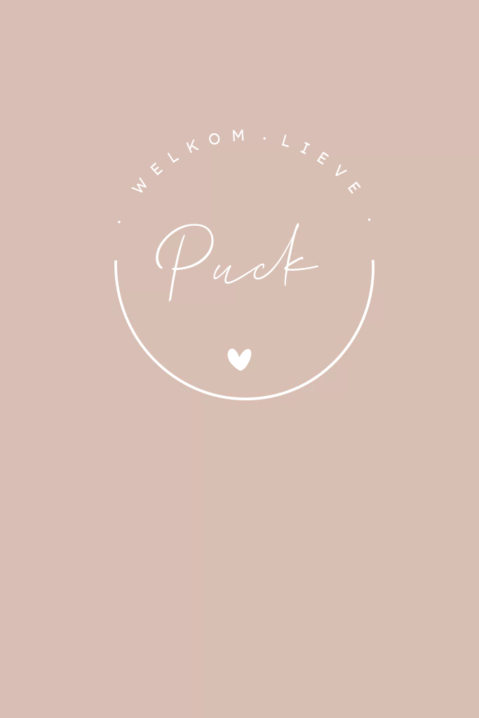 Lief geboortekaartje meisje met een roze achtergrond en ronde hoeken. Op het kaartje staat een logo in goudfolie met hartje en de tekst 'welkom lieve'. Pas die kaartje zelf aan met een oliekleur naar keuze.