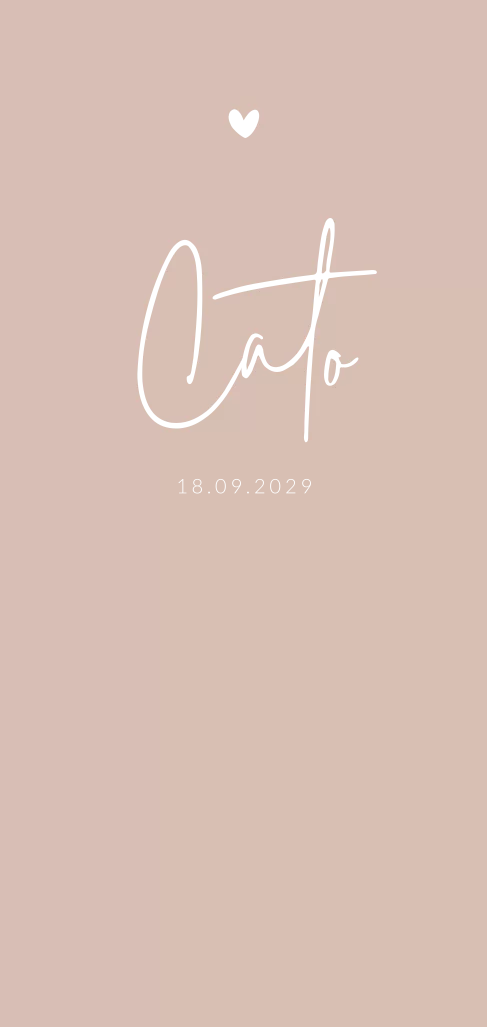 Stijlvolle geboortekaartjes vind je bij Fientje en Co. Geboortekaartje voor een meisje met roze achtergrond en de naam in goudfolie. Bovenaan staat een hartje in folie. Eenvoudig kaartje wat je zelf nog kunt personaliseren met een eigen foto of een labeltje met tekst. Wil je de babynaam extra laten opvallen? Kies dan voor foliedruk en geef in de editor aan welke foliekleur je wilt.