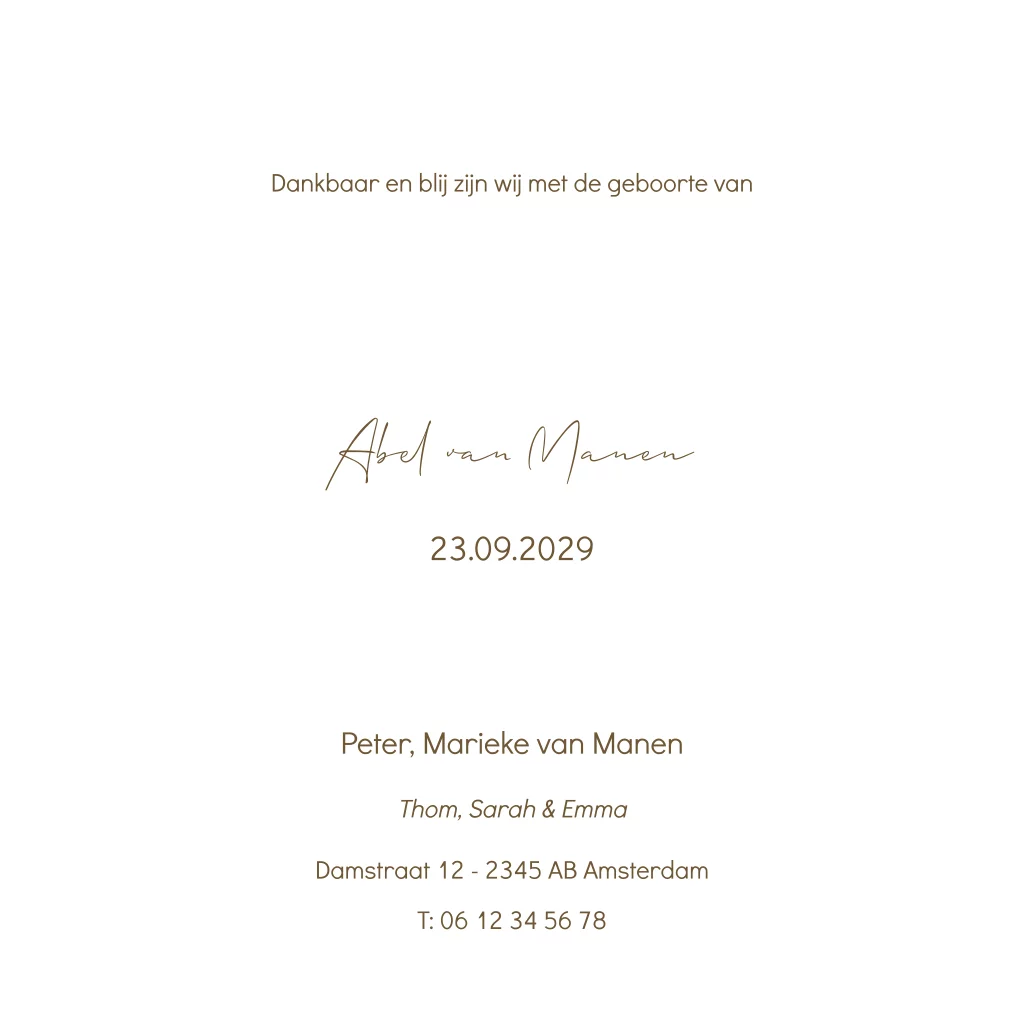 Geboortekaartje vierde kindje getekend kinderen bij wiegje goudfolie