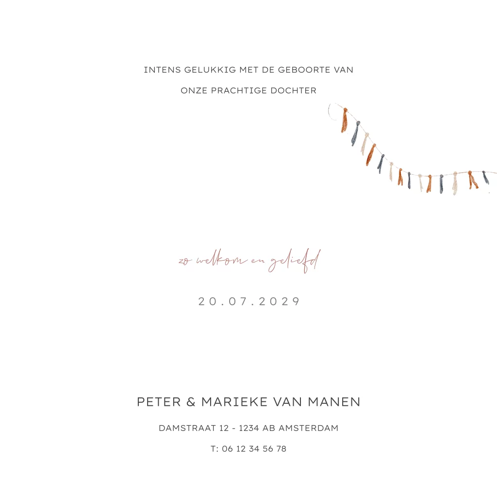Geboortekaartjes met een ooievaar zijn tijdloos en geliefd door veel ouders. Dit prachtige geboortekaartje voor een meisje combineert de klassieke ooievaar met unieke aquarel illustraties, waardoor het kaartje een schattige uitstraling krijgt. De twee ooievaars staan liefdevol bij een mandje met een baby, wat de vreugde van een nieuwe geboorte symboliseert. De toevoeging van vrolijke vlaggetjes maakt dit geboortekaartje extra feestelijk en helemaal compleet. De naam van je kindje wordt gedrukt in elegant goudfolie. Bestel dit unieke geboortekaartje eenvoudig online en kondig de geboorte van je dochter op een stijlvolle en traditionele manier aan.