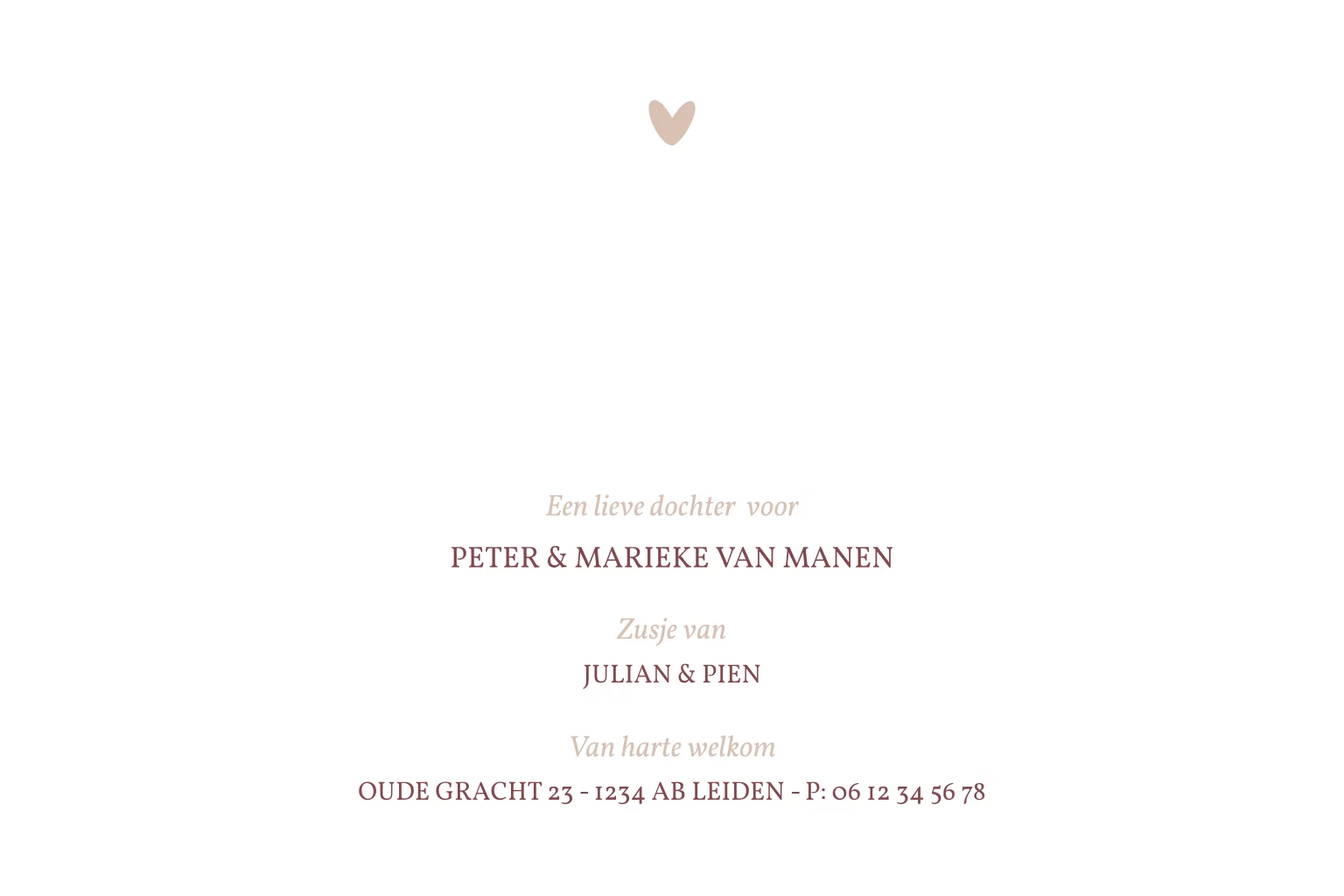 Lief roze geboortekaartje met een initiaal in echt goudfolie. Daaronder staat de roepnaam in folie gedrukt. De zalmroze achtergrond maakt dit kaartje heel zacht.