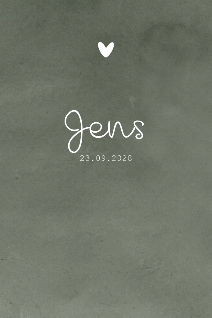 Onze groen waterverf geboortekaartje met een goudfolie hartje is een liefdevol en stijlvol kaartje, perfect voor de geboorte van een jongen. De achtergrond straalt in een rustgevend groen met een prachtig waterverf effect, terwijl de naam schittert in schitterend goudfolie. Het toegevoegde hartje geeft het kaartje een extra vleugje liefde en maakt het helemaal af. Onze kaartjes zijn voorzien van foliedruk, waardoor ze een luxe uitstraling hebben. Het minimalistische en toch stoere ontwerp zorgt voor een rustige en stijlvolle uitstraling.