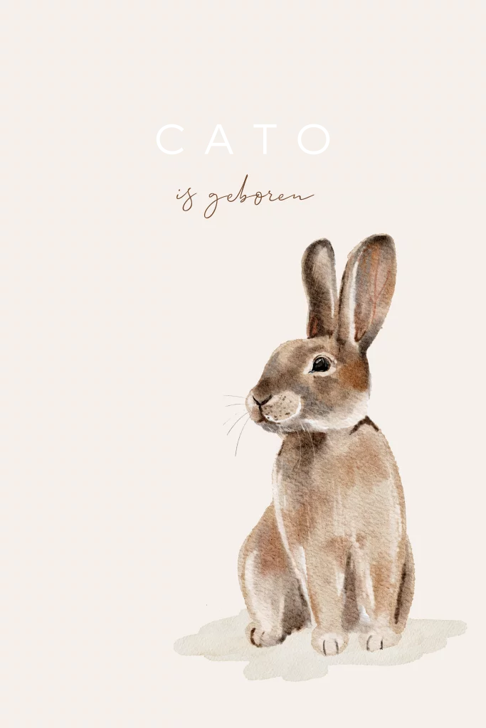 Ben je op zoek naar een lief geboortekaartje voor een klein meisje? Dit kaartje is zo tof voor jullie dochter. Op het kaartje staat een aquarel illustratie van een konijntje. De goudfolie naam maakt het kaartje zo schattig. Dit babykaartje heeft ronde hoeken, maar je kunt dit zelf ook aanpassen naar rechte hoeken in de editor.