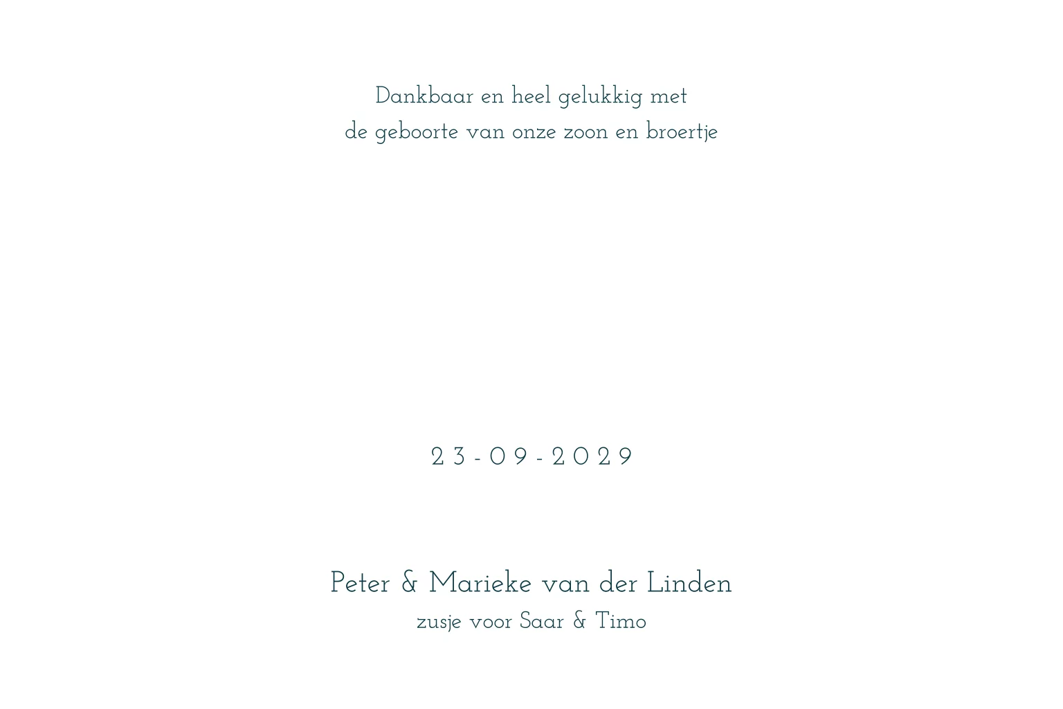 Petrol geboortekaartje voor een jongen met initiaal en foliedruk