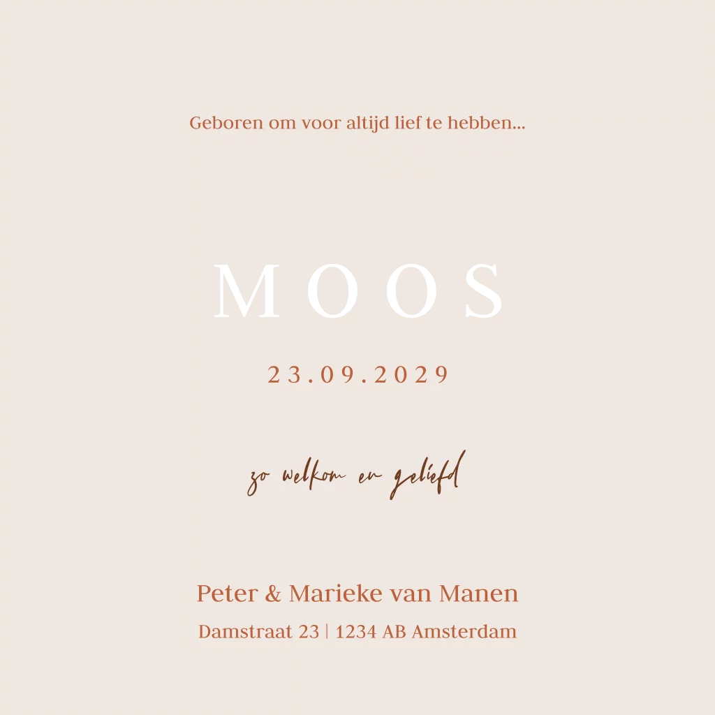 Dit geboortekaartje in een vintage stijl is een echte eyecatcher voor de geboorte van je kindje. Het ontwerp toont liefdevol getekende olifanten in een roestbruine kleur, wat een warme en nostalgische sfeer creëert. De naam van de pasgeborene, wordt prachtig gedrukt in goudfolie, wat een luxe en verfijnde uitstraling geeft. Dit geboortekaartje is ook verkrijgbaar in een bruine variant, waardoor je de keuze hebt om het kaartje volledig aan jouw smaak aan te passen. Perfect voor ouders die op zoek zijn naar een uniek en stijlvol geboortekaartje met een tijdloze uitstraling. Bestel dit vintage geboortekaartje eenvoudig online en verras je familie en vrienden met een elegant ontwerp.