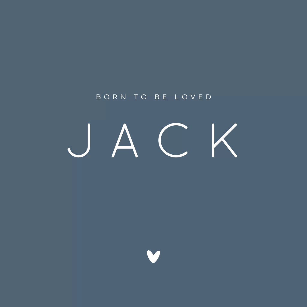 Minimalistische geboortekaartjes vind je bij Fientje en Co. Dit jeansblauwe kaartje isperfect voor de aankondiging van de geboorte van jullie zoon. Wil je de babynaam extra laten opvallen? Kies dan voor foliedruk en geef in de editor aan welke foliekleur je wilt.