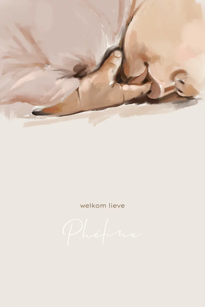 Uniek geboortekaartje voor een klein meisje met olieverf baby