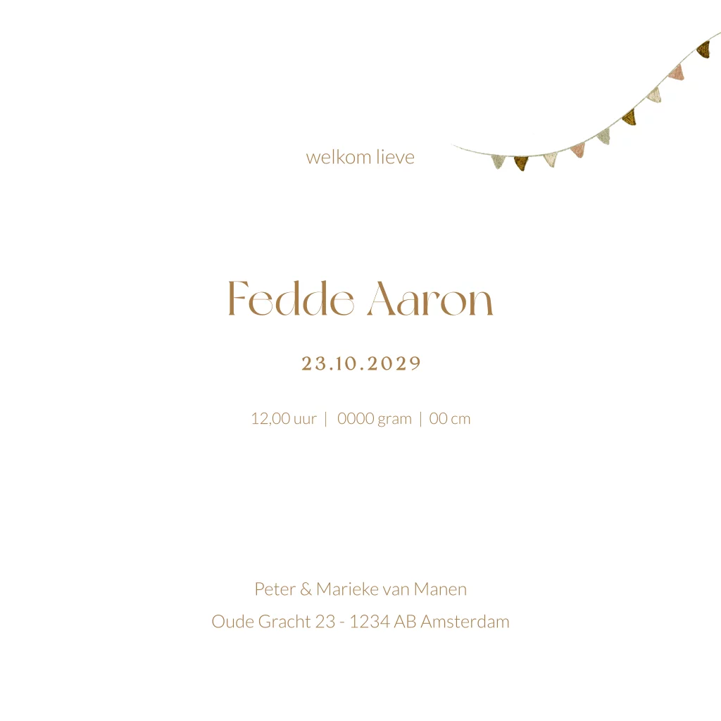 geboortekaartje jongen vos vlaggen getekend