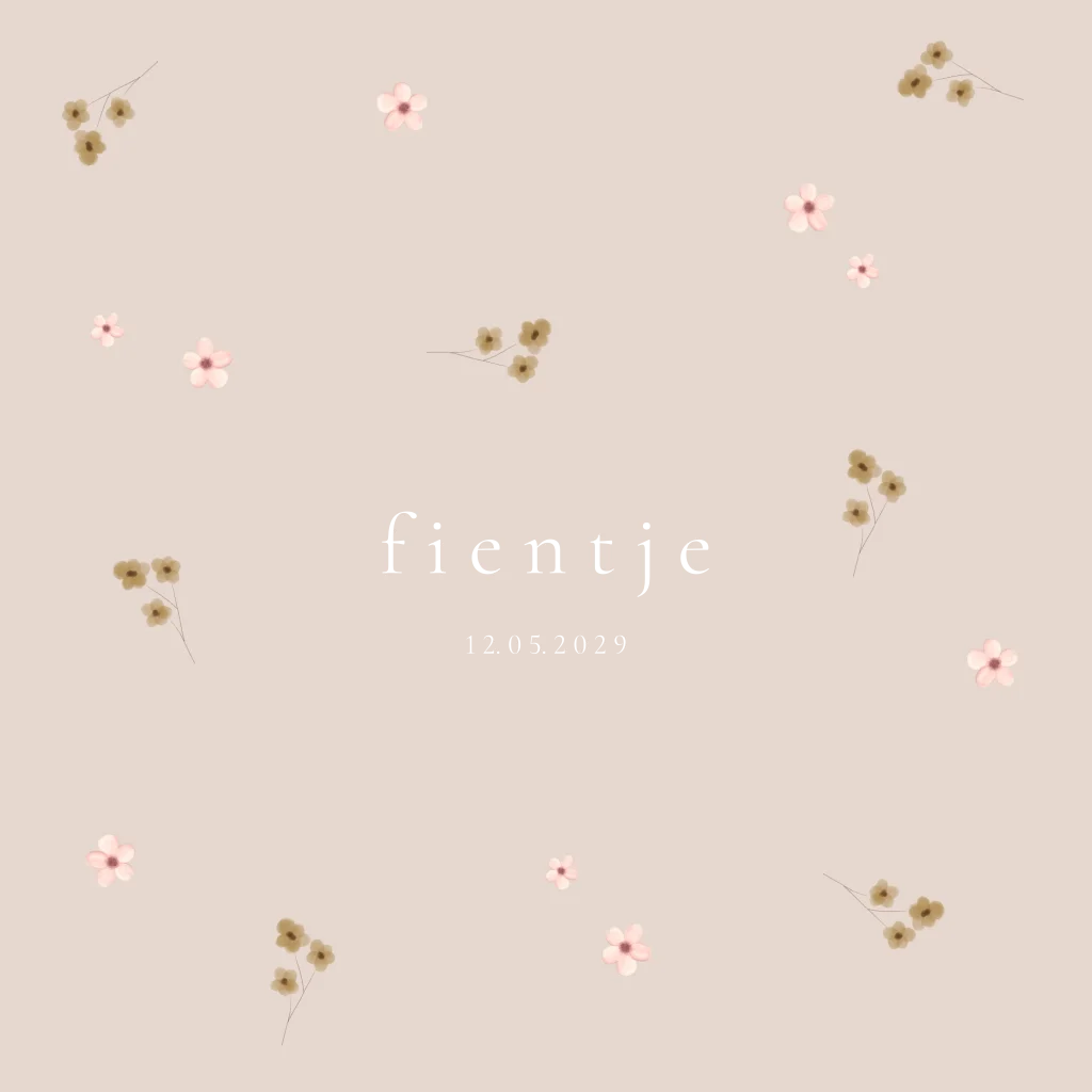 Een mooi minimalistische geboortekaartje met bloemetjes in naturel roze tinten en roséfolie. Wil je liever een andere kleur? De achtergrond kleuren tekst kunnen van kleur gewijzigd worden. Lief geboortekaartje voor een meisje.