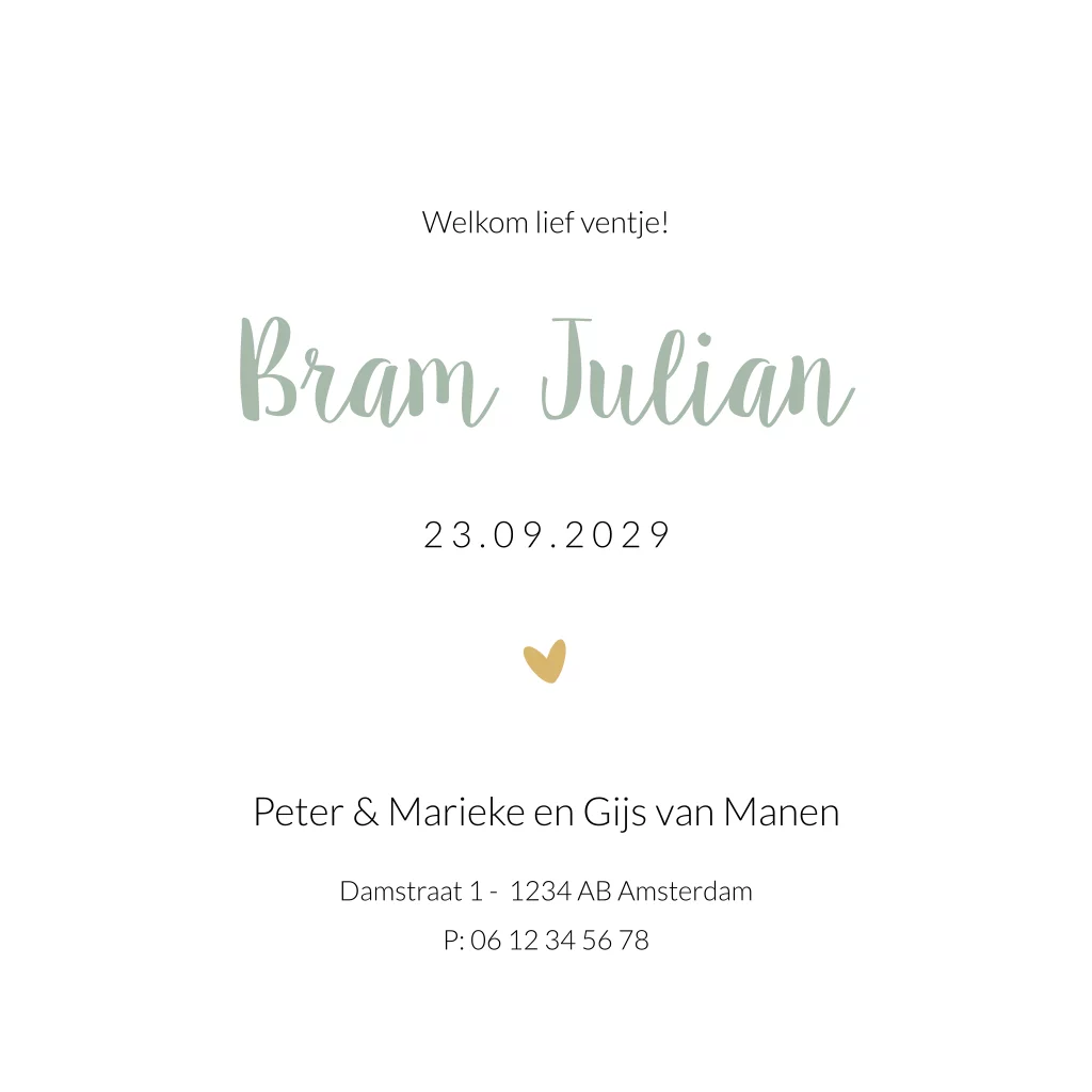 Geboortekaartje met een silhouet van een broer die een klein broertje in de kar voortrekt. Lief kaartje voor een tweede kindje. De kleur is groen, maar als je deze roze maakt kan het ook prima voor een meisje.