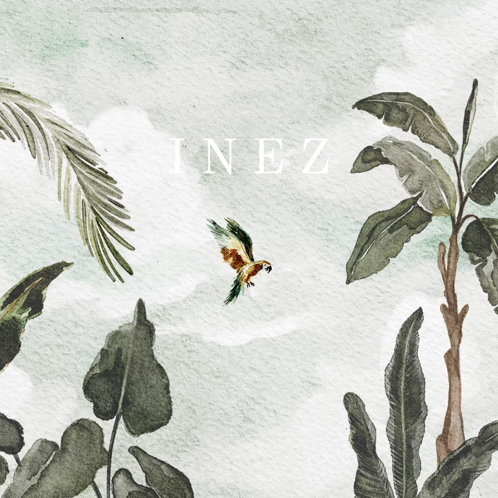 Vierkant geboortekaartje jungle met papegaai in waterverf