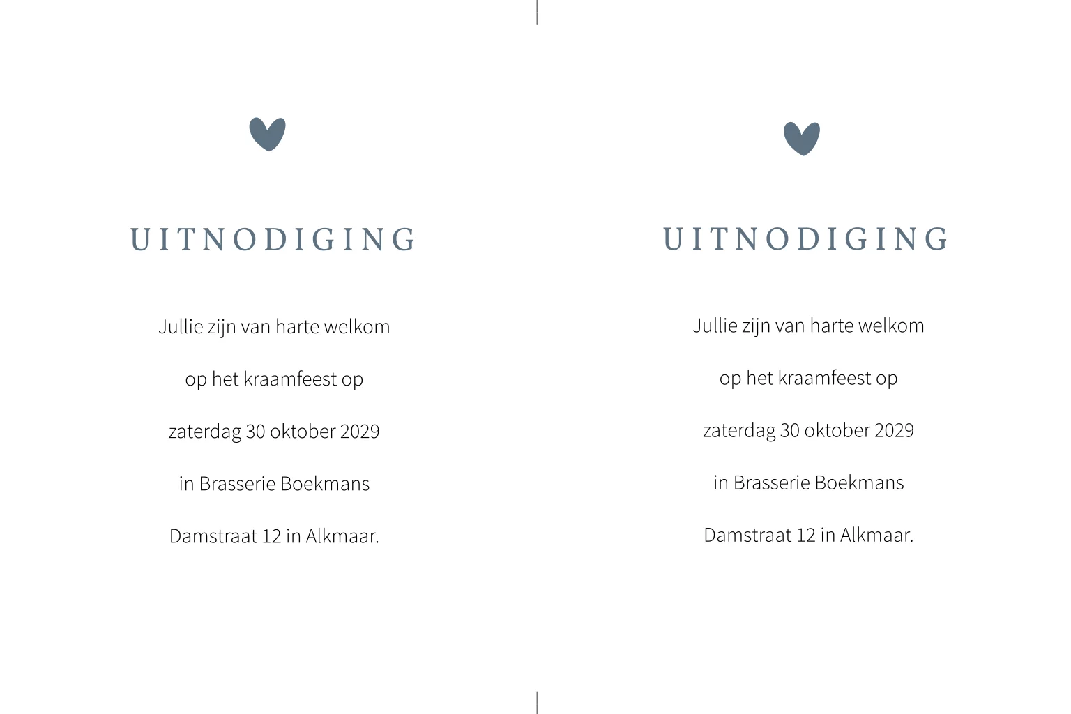 Labels voor aan je geboortekaartje met een uitnodiging voor een kraamfeest. Deze labels moet je zelf thuis nog even doormidden snijden. Maak het kaartje in dezelfde stijl als het geboortekaartje voor een mooi geheel.