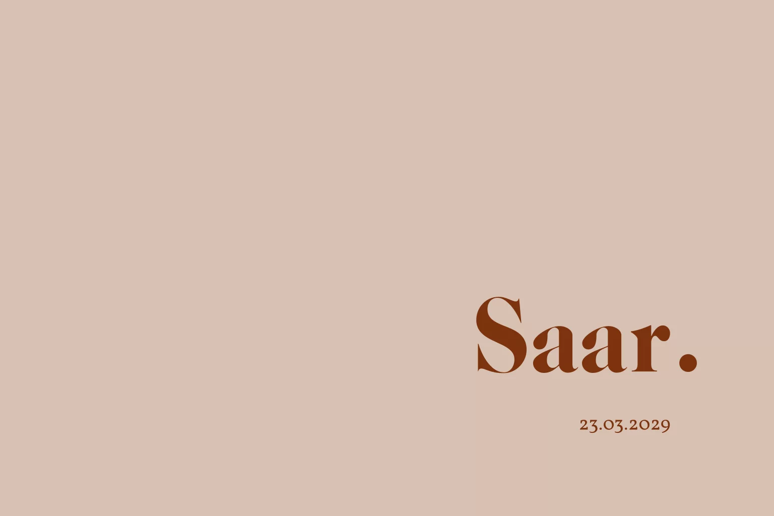Eenvoudig oudroze geboortekaartje in een liggende variant met ronde hoeken. De naam staat onderin in een roestbruin lettertype. Dit minimalistische geboortekaartje kan je zelf helemaal naar wens aanpassen.