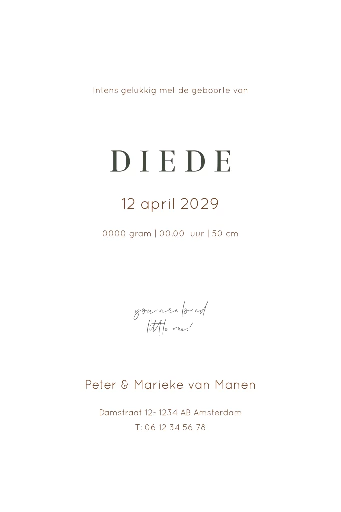 Een lief en origineel geboortekaartje voor een meisje met neutrale pastel tinten en de naam kan ook worden gedrukt in goudfolie maar je kan ook kiezen uit rosé, koper, zwart of zilverfolie.