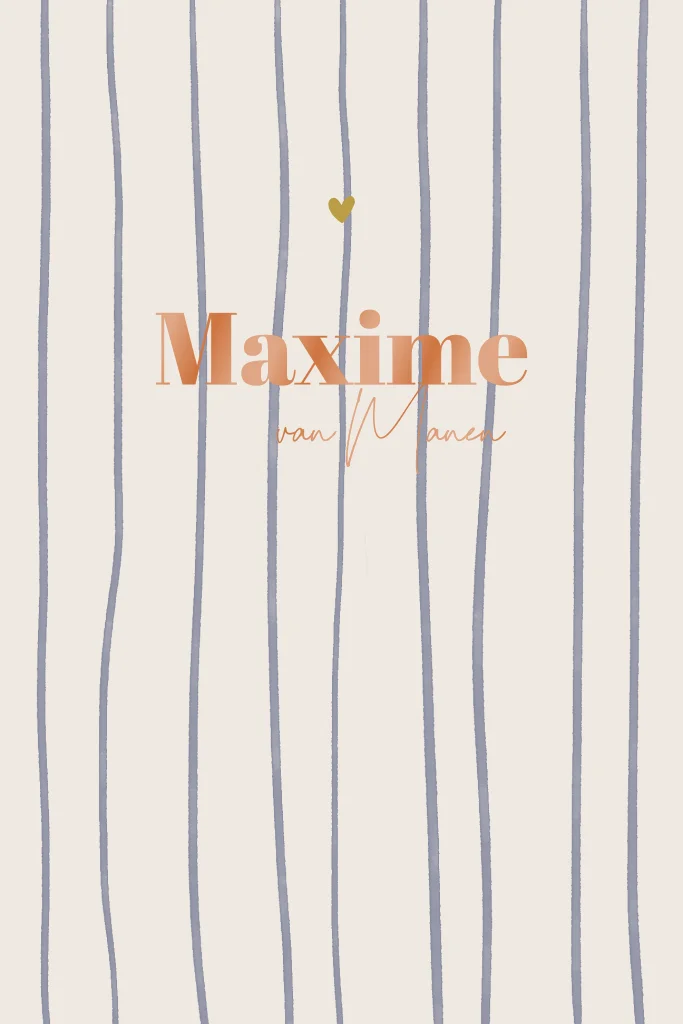 Dit kaartje is perfect voor ouders die een trendy geboortekaartje willen dat nét even anders is. De blauwe handgetekende strepen maken het lief en speels, terwijl de glanzende oranje letters een stijlvolle blikvanger vormen. Zo wordt de naam van jullie kindje meteen op een bijzondere manier in de spotlight gezet.