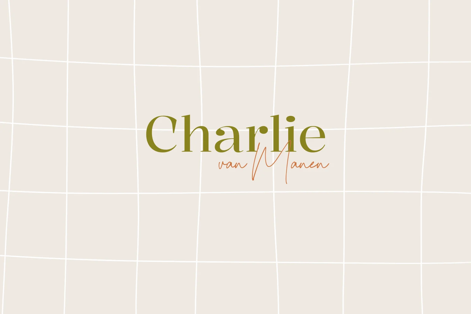 Neutraal geboortekaartje met een beige achtergrond en een patroon van witte getekende ruitjes. De naam wordt in het groen gedrukt, maar kan je zelf ook eenvoudig aanpassen in onze editor.