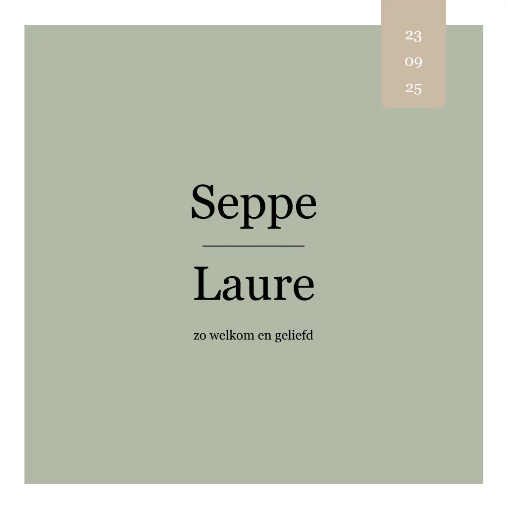 Klassiek geboortekaartje voor een tweeling. De achtergrondvlakken zijn groen, dus helemaal geschikt voor een jongen en een meisje. Dit minimalistische geboortekaartje heeft een mooie klassieke uitstraling. Door de kleur van het vlak aan te passen, kan je er ook een jongens of meisjes tweelingkaartje van maken.