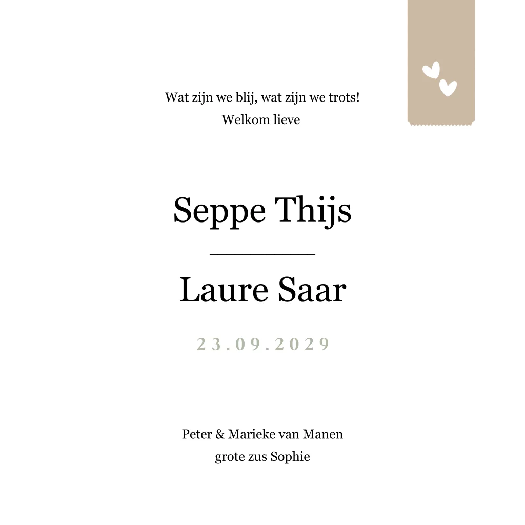Minimalistisch tweeling geboortekaartje groen vlak en labeltje