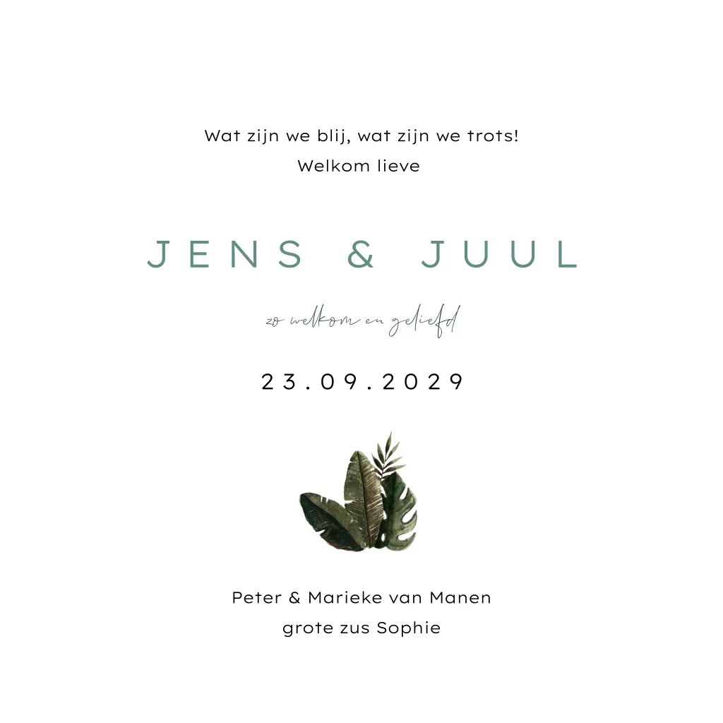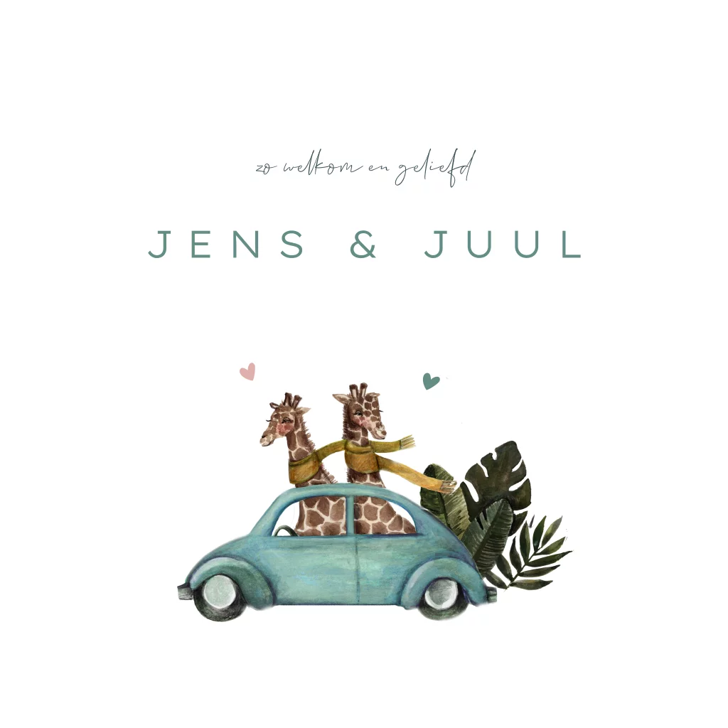 Tweeling geboortekaartje met giraffen in een kever met een sjaal