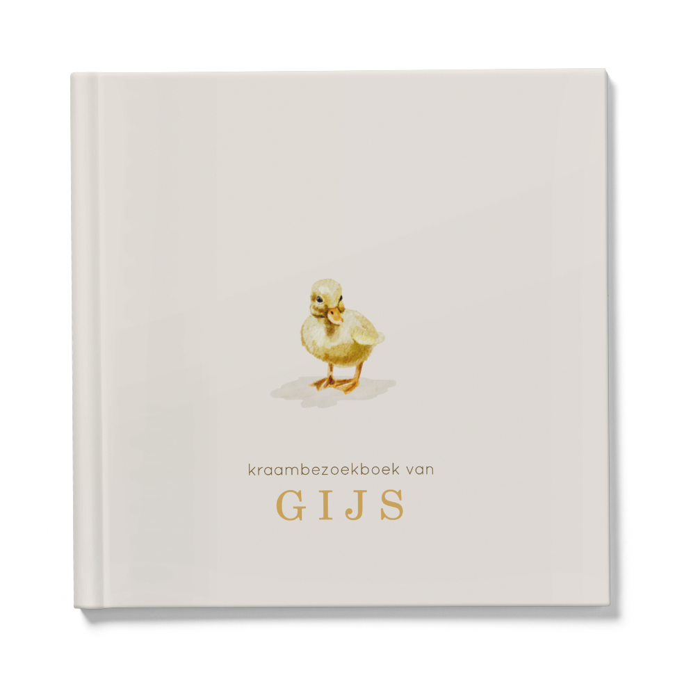 Lief getekend kraambezoekboek met een schattig en grappig klein eendje. Dit rustige en simpele kraambezoek boek is uniek door de lieve illustratie. De illustratie staat los op het boek en je kunt het zelf helemaal bewerken in onze editor.. De binnenkant van het boek bevat standaard pagina's. Bekijk hier de binnenkant