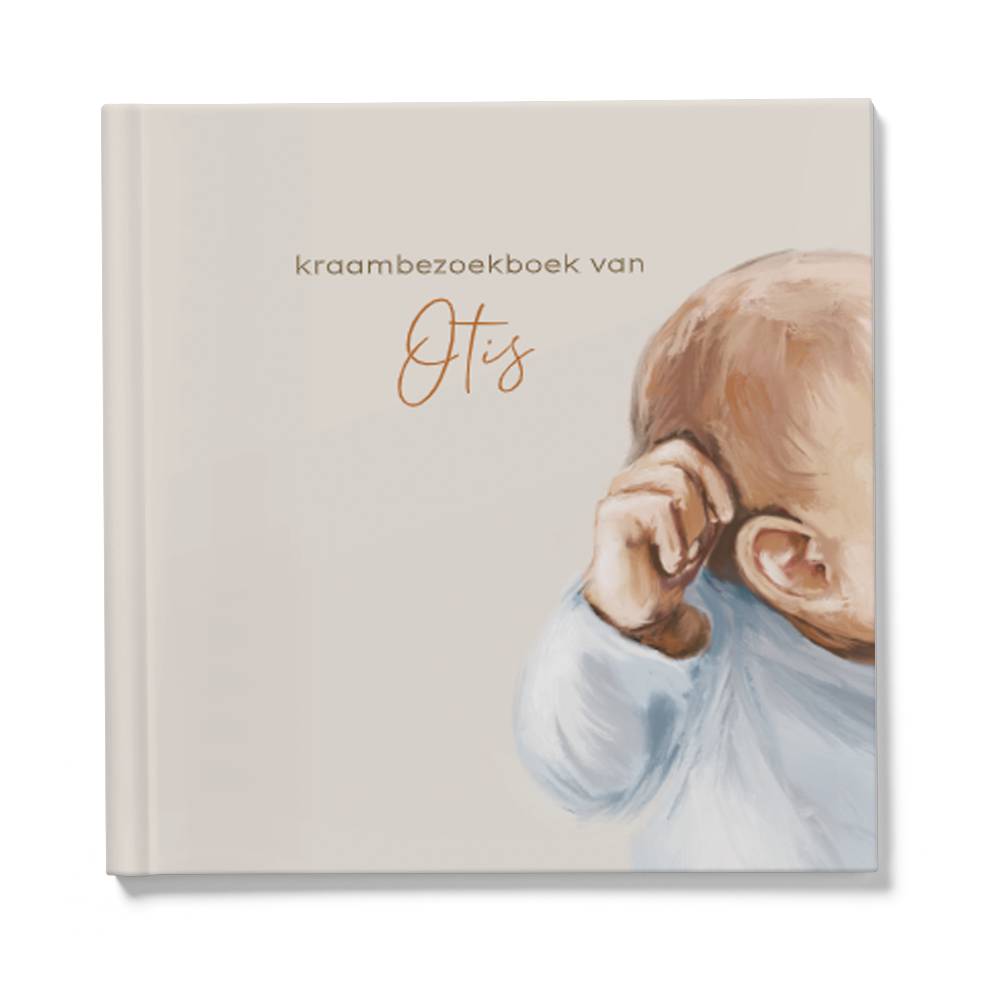 Dit stijlvolle kraambezoekboek is ontworpen in dezelfde warme olieverfstijl als onze bijpassende geboortekaartjes voor jongens. Op de cover zie je een teder portret van een baby jongen, geschilderd in zachte penseelstreken en natuurlijke tinten. Een klassiek en tijdloos ontwerp, perfect voor wie houdt van kunstzinnige eenvoud en warmte.