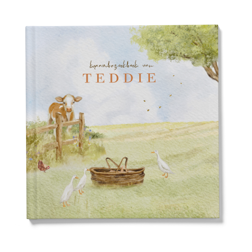 Bewaar alle mooie woorden en herinneringen van je kraamvisite in dit unieke kraambezoekboek! Met een prachtige, handgetekende illustratie van een lente tafereel met een schattig kalfje, loopeenden en een babymandje, straalt dit boek een warme sfeer uit. Een waardevol aandenken om later met veel plezier in terug te bladeren. De binnenkant van het boek bevat standaard pagina's. Bekijk hier de binnenkant