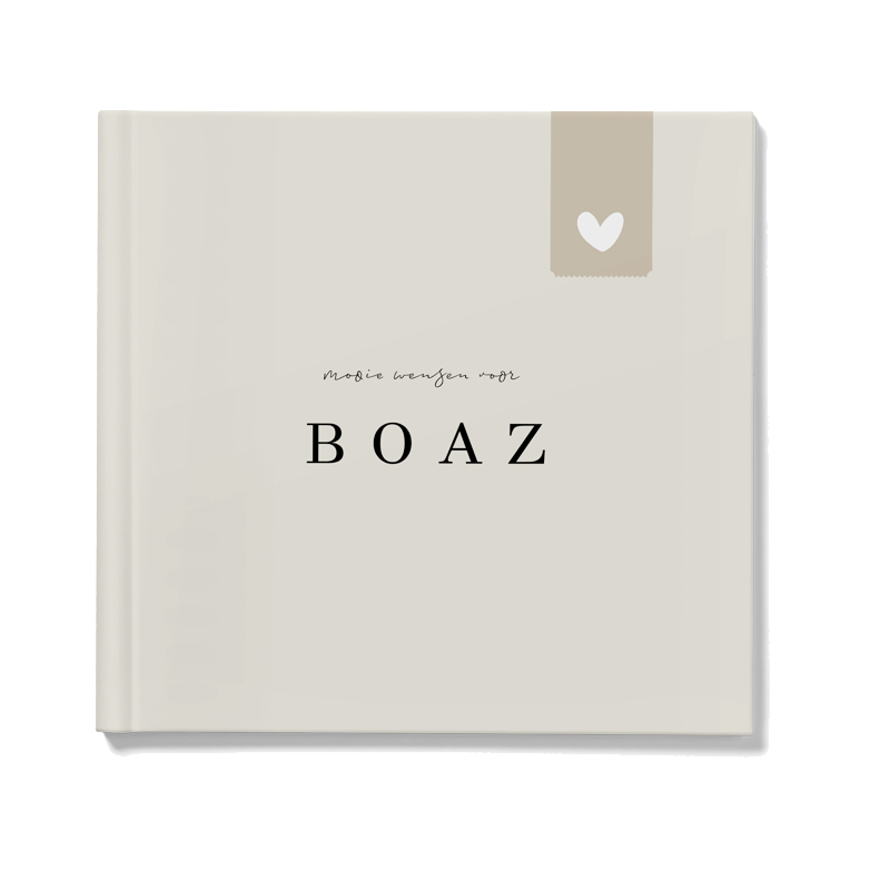 Prachtig kraambezoekboek voor een pasgeboren jongen. De voorkant van dit boek heeft een label met een hartje en de naam van jullie kindje. Je kunt deze omslag helemaal zelf aanpassen. De binnenkant van het boek bevat standaard pagina's.