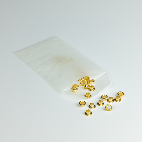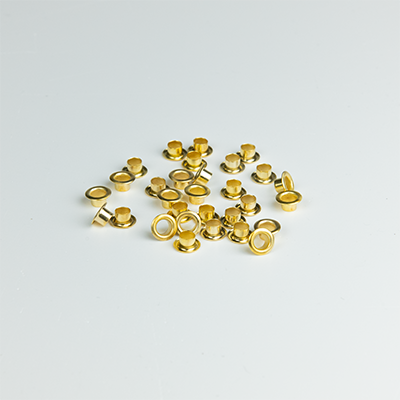 Goudkleurige ringetjes (30 stuks). Formaat: ⌀ 0,5 cm. Gebruik deze in combinatie met de flenstang om mooie gaatjes te maken en kaarten met elkaar te verbinden.