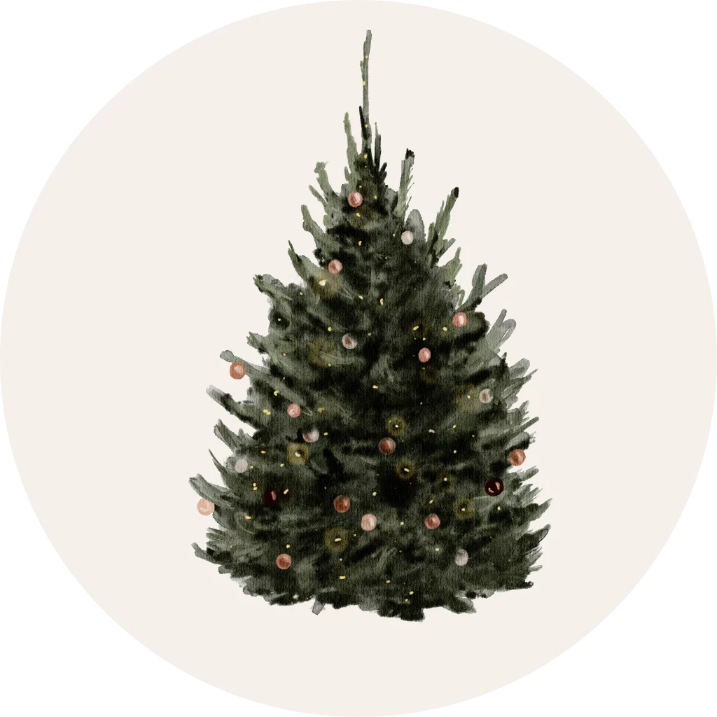 Sticker voor je kerstkaart met getekende kerstboom. Maak je envelop van de kerstkaarten af met deze unieke sluitsticker.