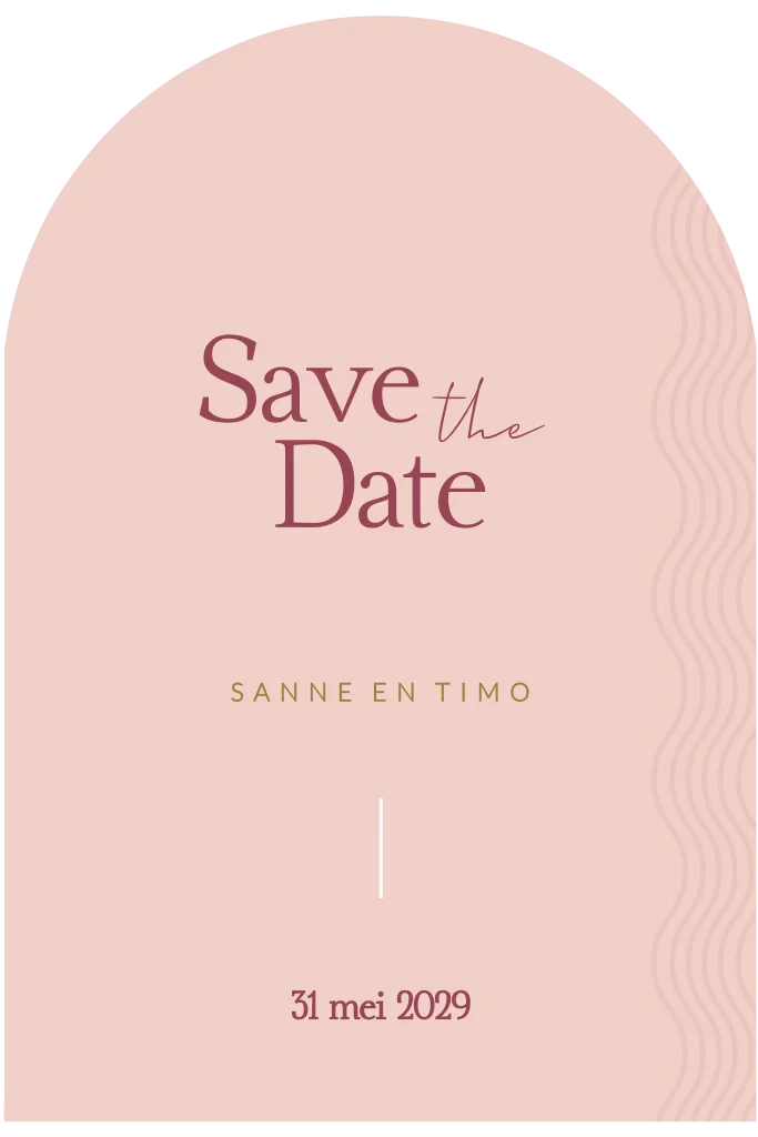Roze save the datekaart met golfpatroon aan de zijkant.
