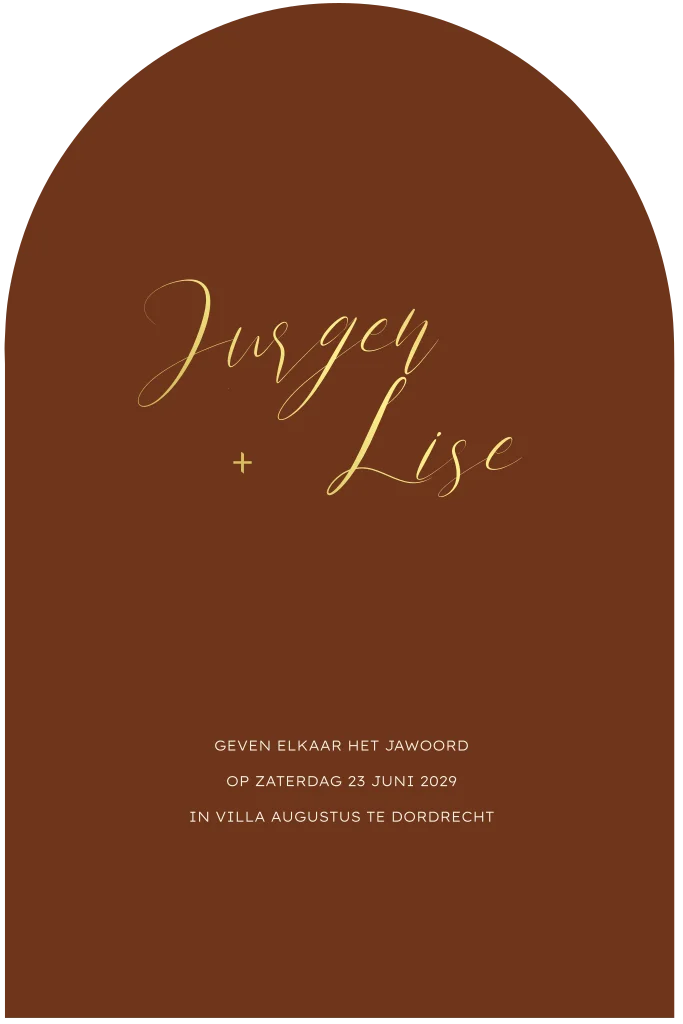 Trouwkaart in boogvorm roodbruin chique klassiek