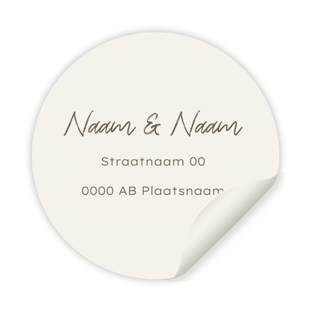 Mooie ronde adresstickers met een creme achtergrond en de namen in een handgeschreven lettertype. Vul op iedere sticker afzonderlijk de adressen in. Kopieer het vel als je meer dan 12 adressen invoert.