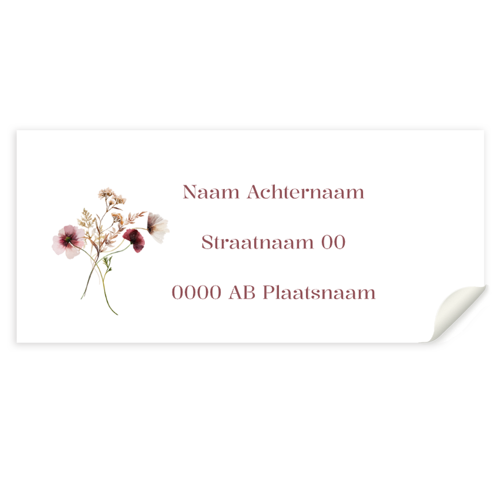 Adresstickers zijn een mooie aanvulling op je trouwstijl. Deze adressticker heeft een afbeelding van een boeket en past zo goed bij onze getekende trouwkaarten. Met deze stickers hoef je niet meer handmatig de adressen in te voeren. Vul gewoon de adressen in op iedere sticker afzonderlijk. Het formaat van de sticker is 97x45mm en heeft rechte hoeken. De stickers zijn verkrijgbaar in sets van 12 stuks.