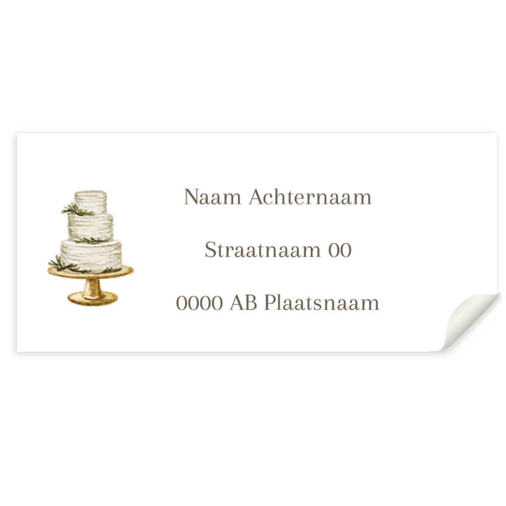 Rechthoekige adressticker trouwkaart met bruidstaart