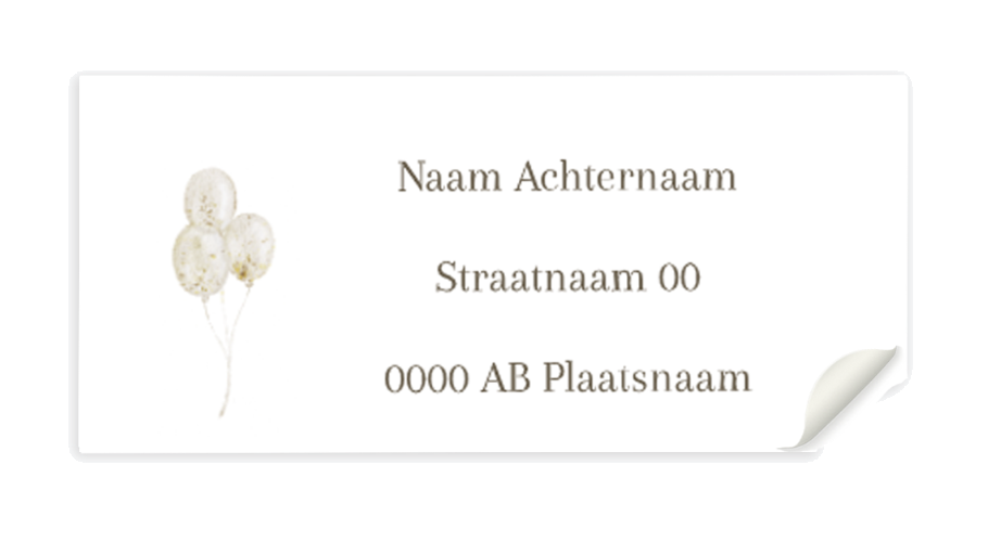 Adressticker voor trouwen met een illustratie van ballonnen. LET OP: Voer voordat je in de editor gaat het aantal in bij "opties selecteren". Formaat stickers 97x45mm.