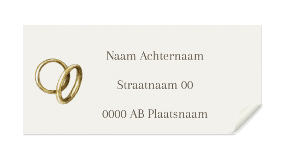 Adressticker voor trouwen met een illustratie van ringen. LET OP: Voer voordat je in de editor gaat het aantal in bij "opties selecteren". Formaat stickers 97x45mm.