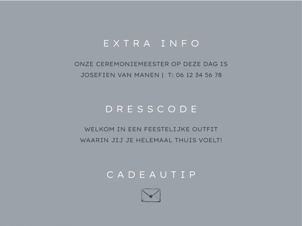 Blauw label gasten extra informatie trouwkaart