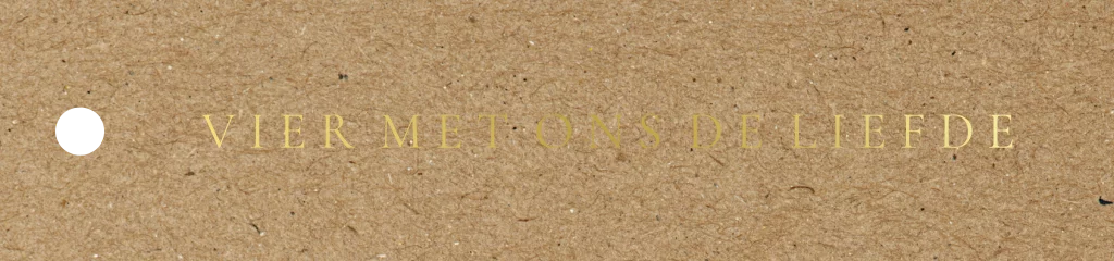 Rechthoek labeltje met een kraftlook achtergrond. Dit labeltje heeft al een boorgaatje. Op het labeltje voor je trouwkaart staat 'vier met ons de liefde' in goudfolie. Je kunt de tekst zelf aanpassen.
