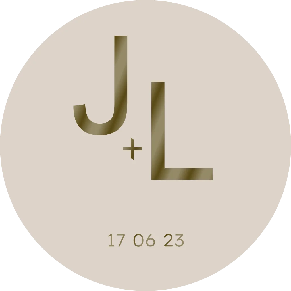 Sticker voor trouwen met initialen in hoogglans. De kleuren van deze sticker kan je naar wens aanpassen.