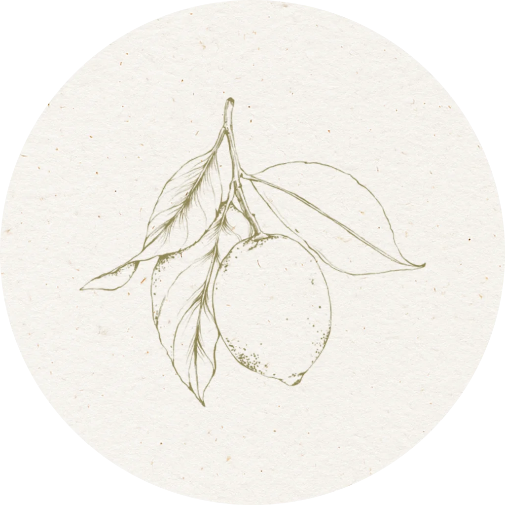 Sticker voor een trouwkaart met getekende citroenen in een groene kleur.