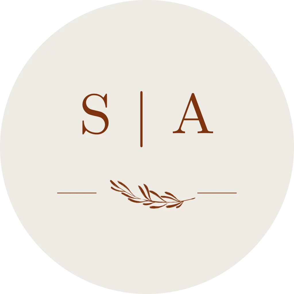 Sticker trouwkaart initialen en roestbruin takje