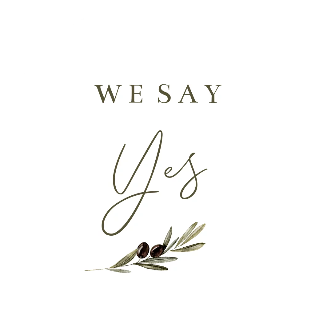 Sticker trouwkaart met olijftakje en we say yes.
