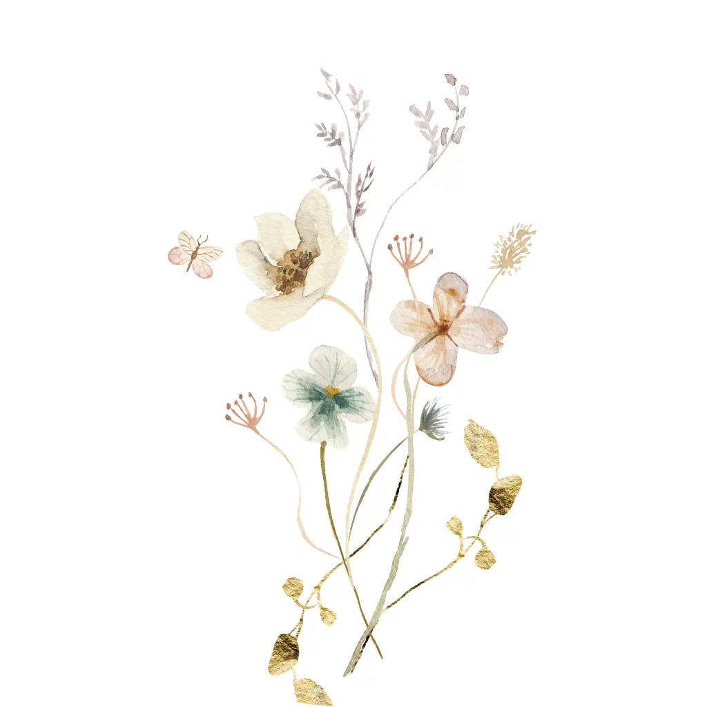 Sticker trouwkaart waterverf bloemetjes roze blauw geel