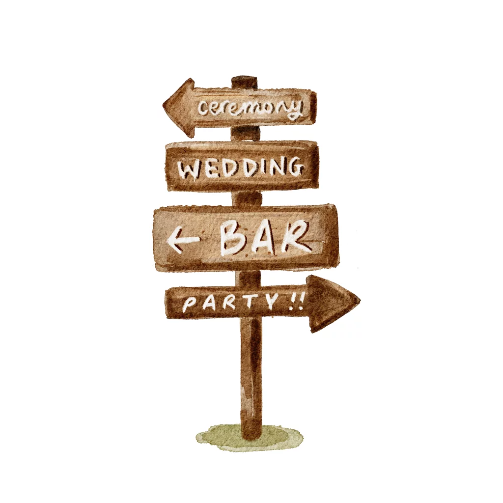 Sticker voor een trouwkaart met een illustratie van een wegwijzer.
