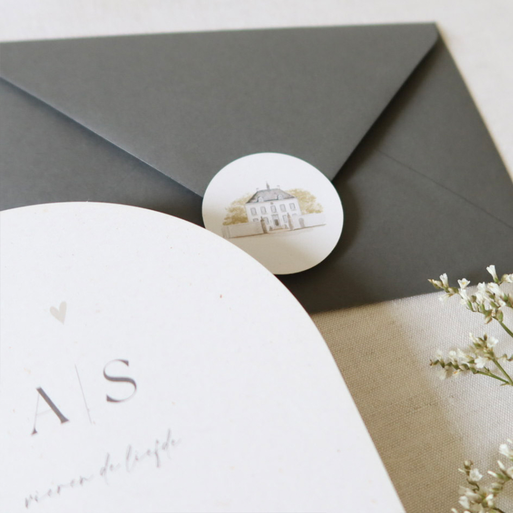 sticker trouwkaart met het witte kasteel in Loon op Zand. Prachtige illustratie van een trouwlocatie.| Totaalprijs: 0 |