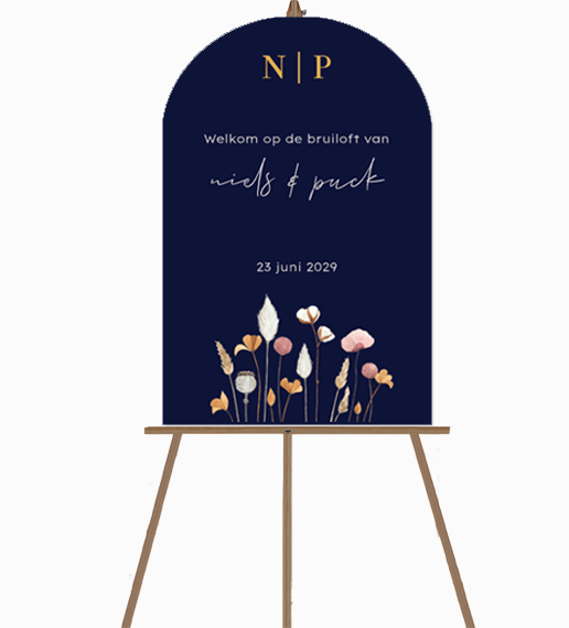 Welkomstbord illustratie bloemen boogvorm blauw
