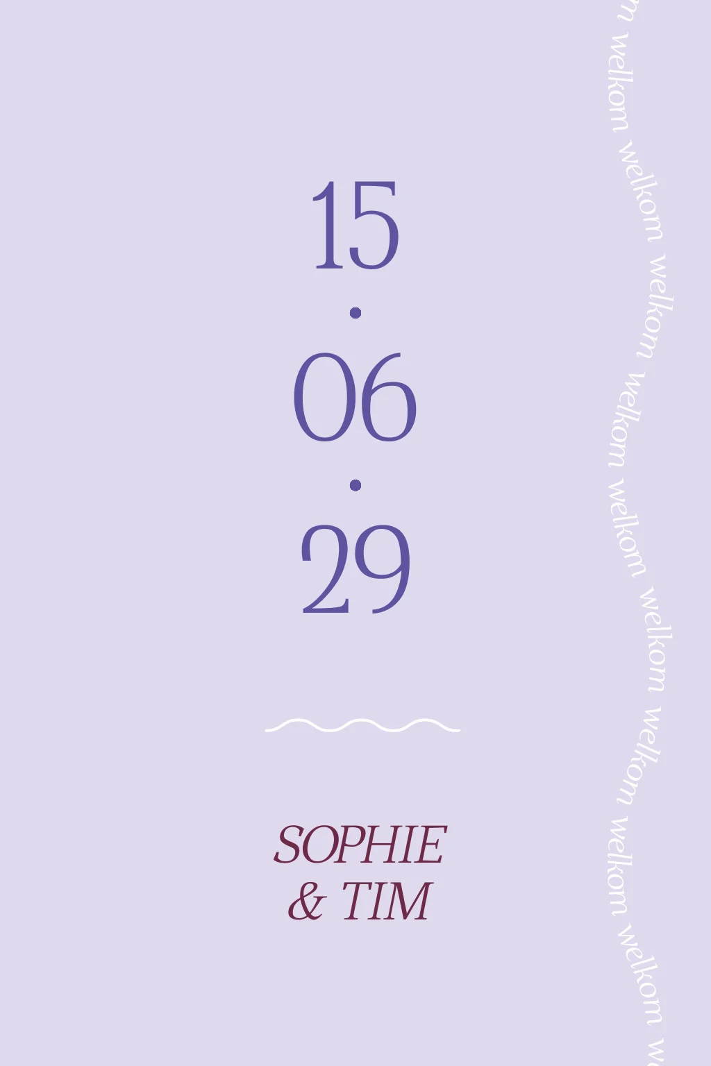Welkomstbord modern bruiloft lila
