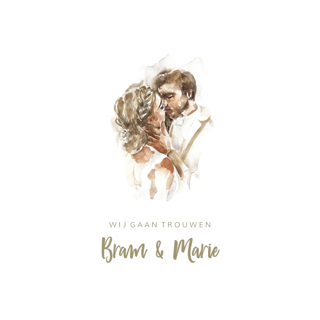 Originele trouwkaart met waterverf illustratie van een bruidspaar. Maak de kaart zelf verder af. Ook maatwerk illustraties mogelijk.