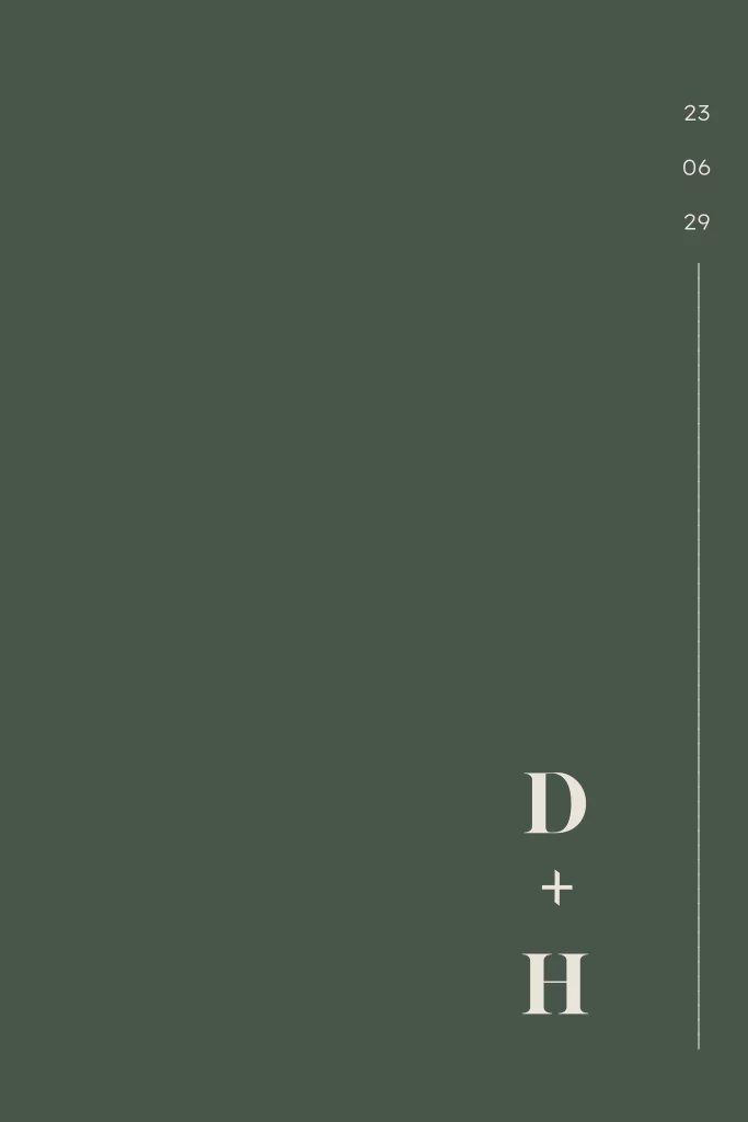 Enkele trouwkaart in moderne stijl met met een mooie donkergroene achtergrond. Op de voorkant staan initialen en de datum met een strakke lijn. Op de achterkant vind je de gegevens van de bruiloft. Je kunt bij deze kaart ook een los beige kaartje toevoegen met informatie over de locaties. De groene achtergrondkleur van deze trouwkaart kan je zelf aanpassen als je liever een andere kleur wil.